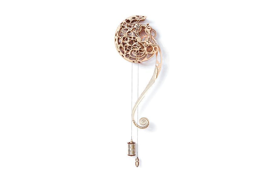 Вже в процесі збирання 3D пазлу Pendulum від Wooden City, Ви відчуєте натхнення та спокій духу. Коли зберете та повісите на стіну готову модель, заведіть її, потягнувши за мотузку з коміркою вниз. Відкритий механізм почне рухатися, шестерні почнуть крутитися і вигадливий візерунок оживе! Маятник почне монотонно похитуватися у чіткому ритмі. Ви розслабитесь, сконцентруєте думки на приємних подіях та людях.